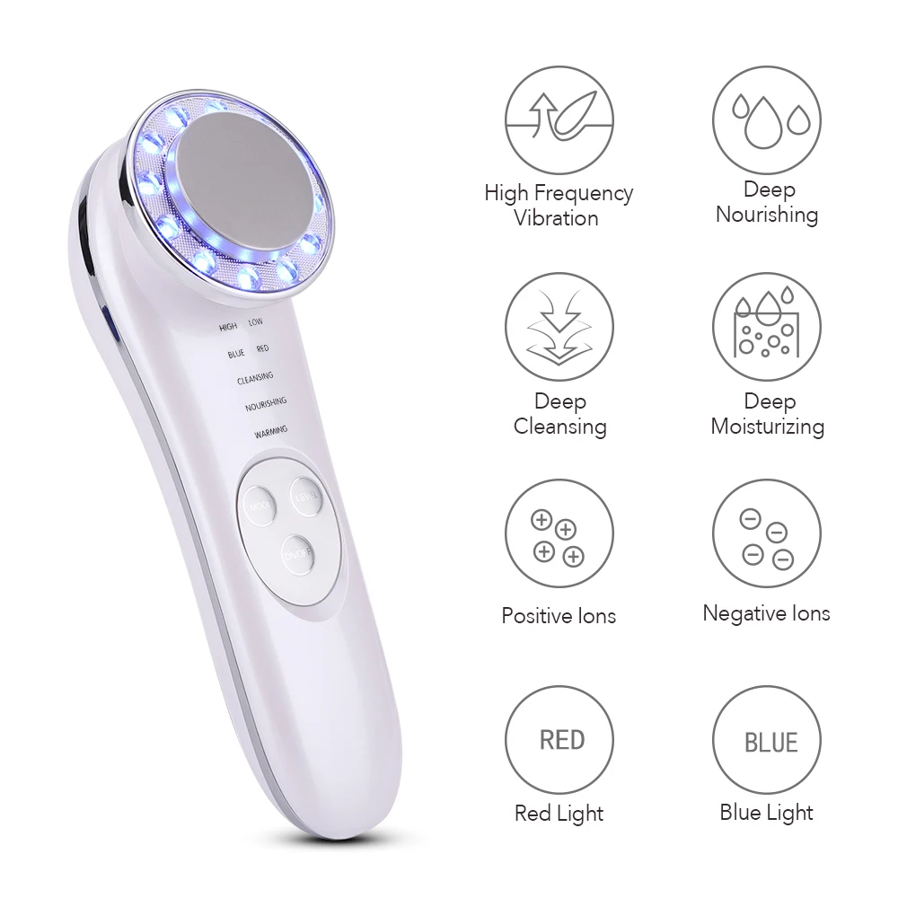 Working Principle: ION+, LED, RF, EMS, Warm, Infrared, Ultrasound Wave, Vibration Massage